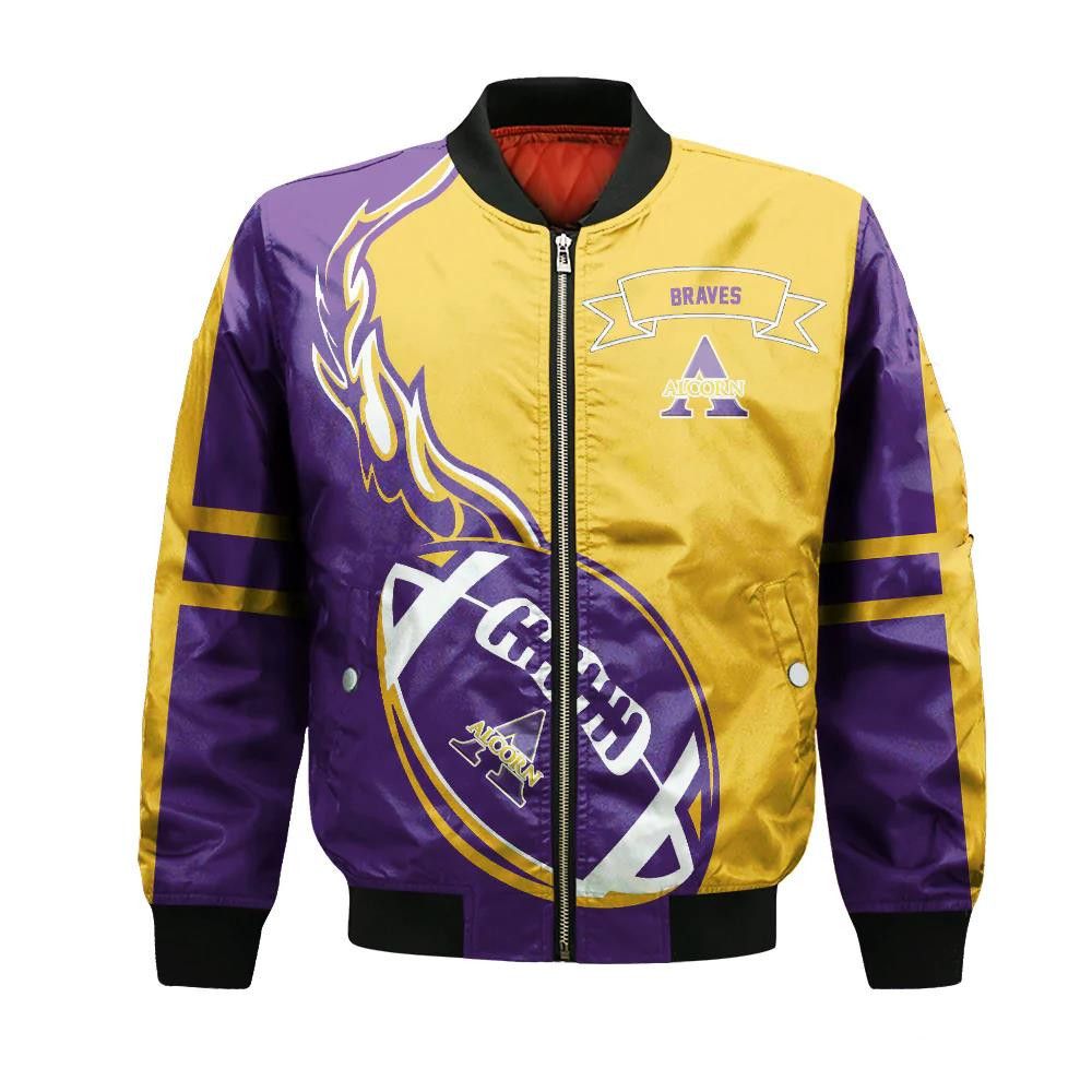 Alcorn State Braves Bomber Jacket 3D Printed Flame Ball Pattern – livanniespoon Store
