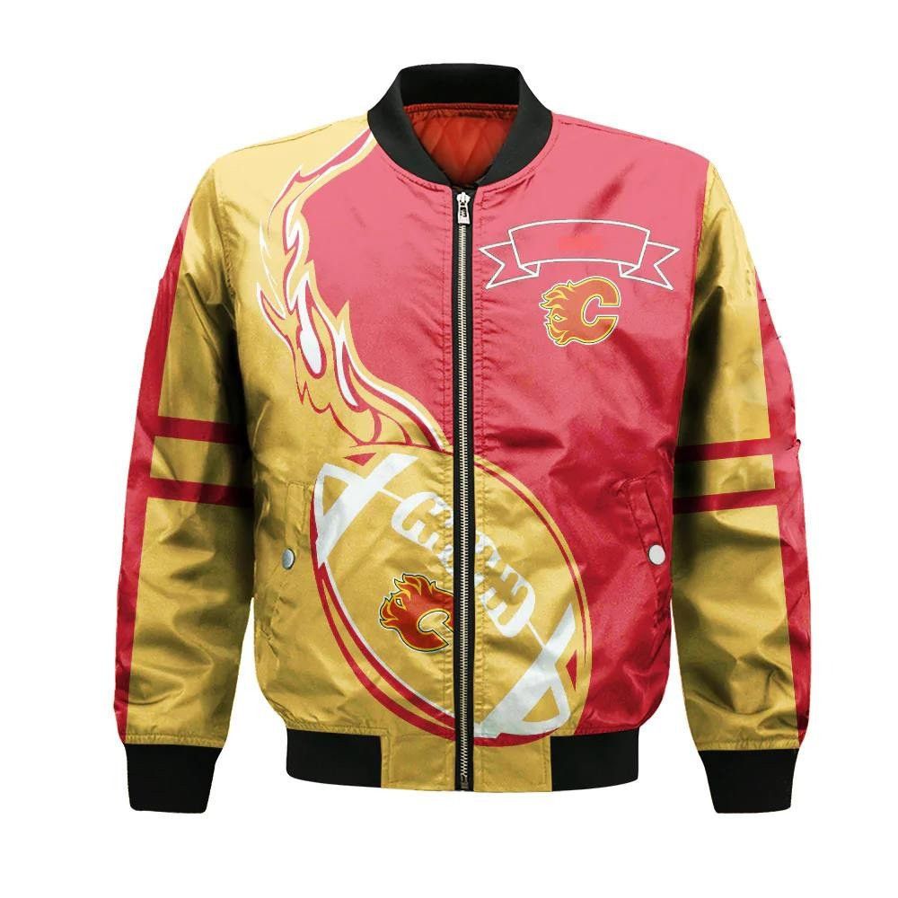 Calgary Dinos Bomber Jacket 3D Printed Flame Ball Pattern – livanniespoon Store