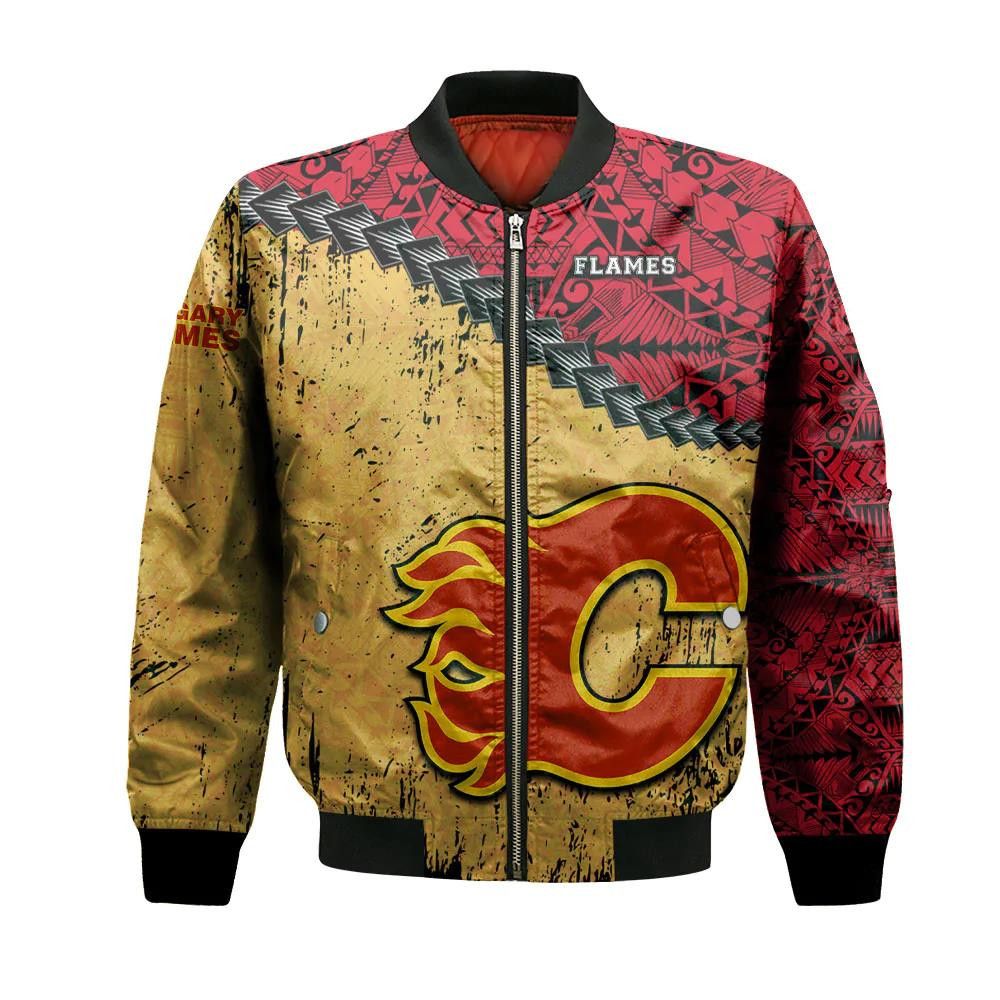 Calgary Flames Bomber Jacket 3D Printed Grunge Polynesian Tattoo – livanniespoon Store