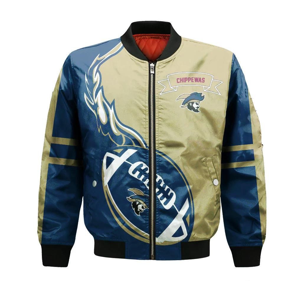 Central Michigan Chippewas Bomber Jacket 3D Printed Flame Ball Pattern – livanniespoon Store