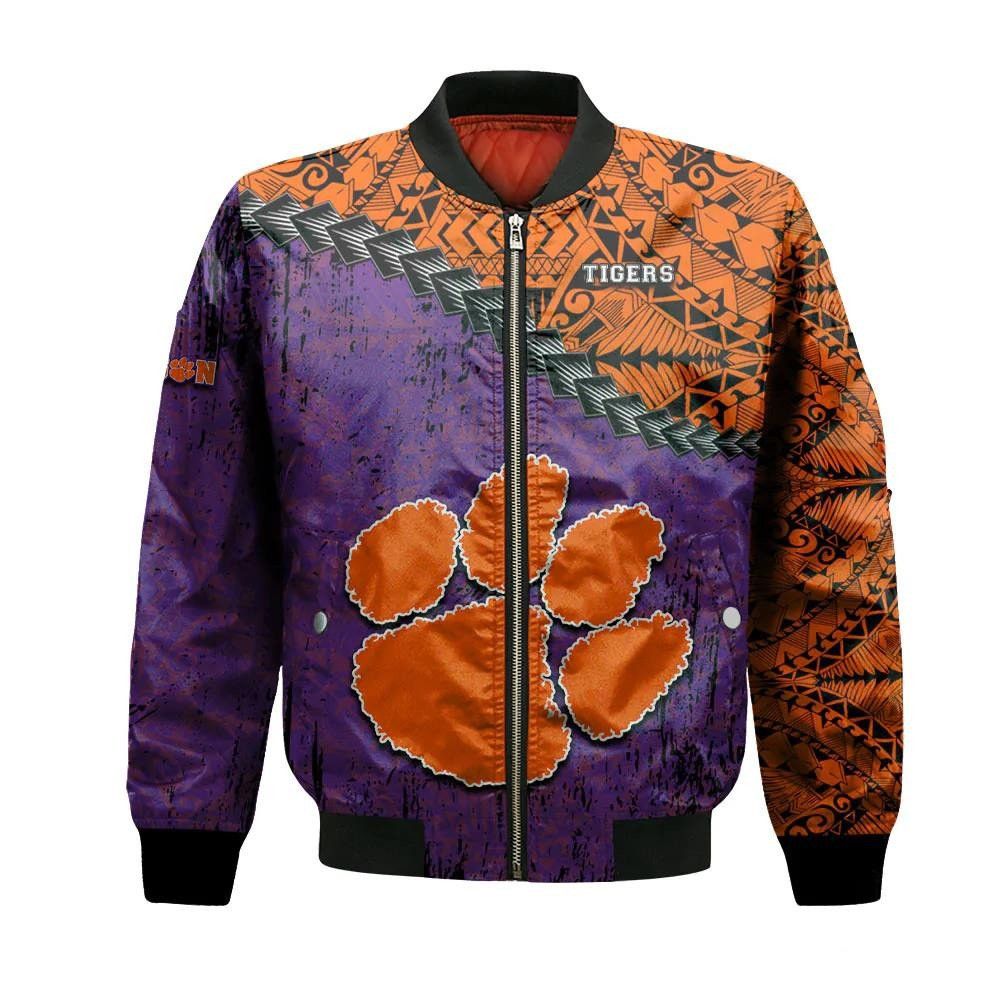 Clemson Tigers Bomber Jacket 3D Printed Grunge Polynesian Tattoo – livanniespoon Store