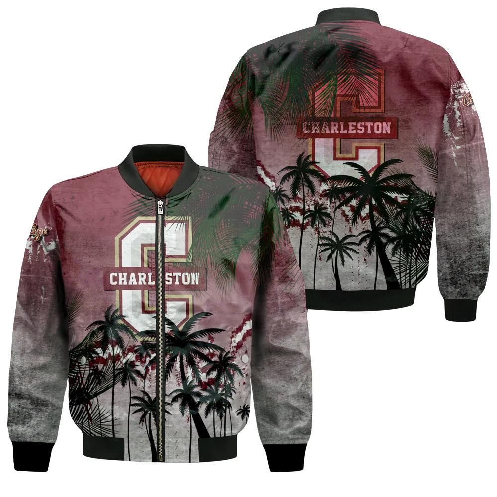 College Of Charleston Cougars Bomber Jacket 3D Printed Coconut Tree Tropical Grunge – livanniespoon Store