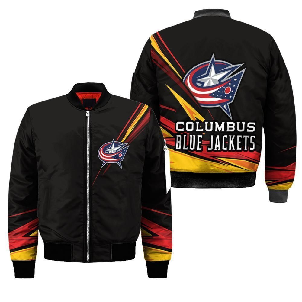 Columbus Blue Jackets Logo On Black Pattern Bomber Jacket – livanniespoon Store