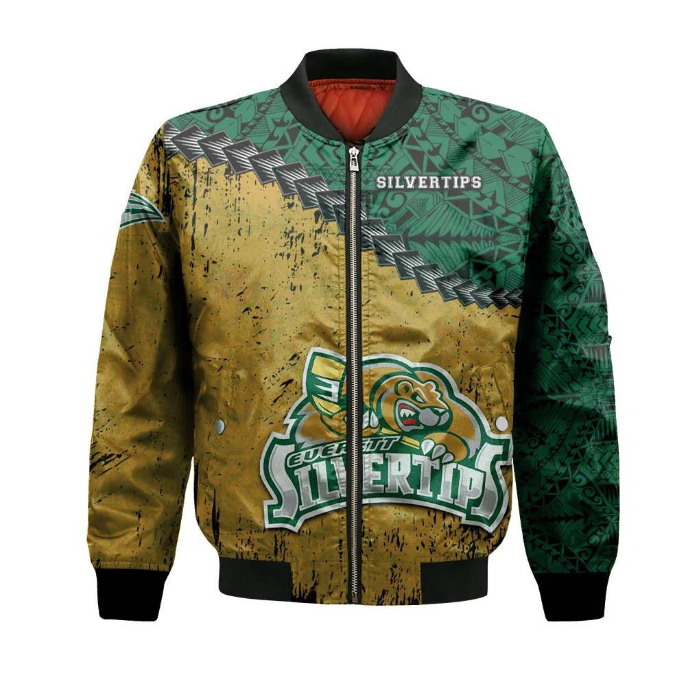 Everett Silvertips Bomber Jacket 3D Printed Grunge Polynesian Tattoo – livanniespoon Store