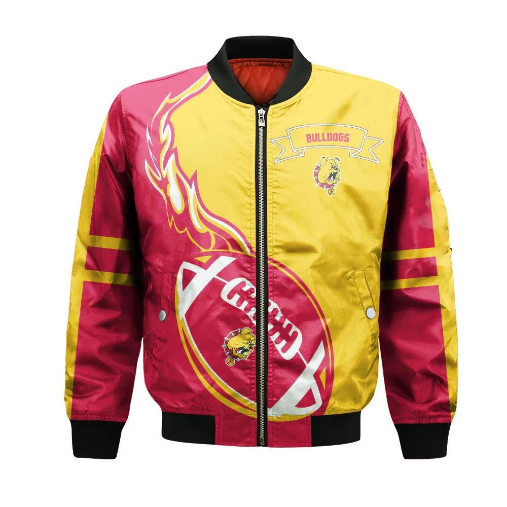 Ferris State Bulldogs Bomber Jacket 3D Printed Flame Ball Pattern – livanniespoon Store
