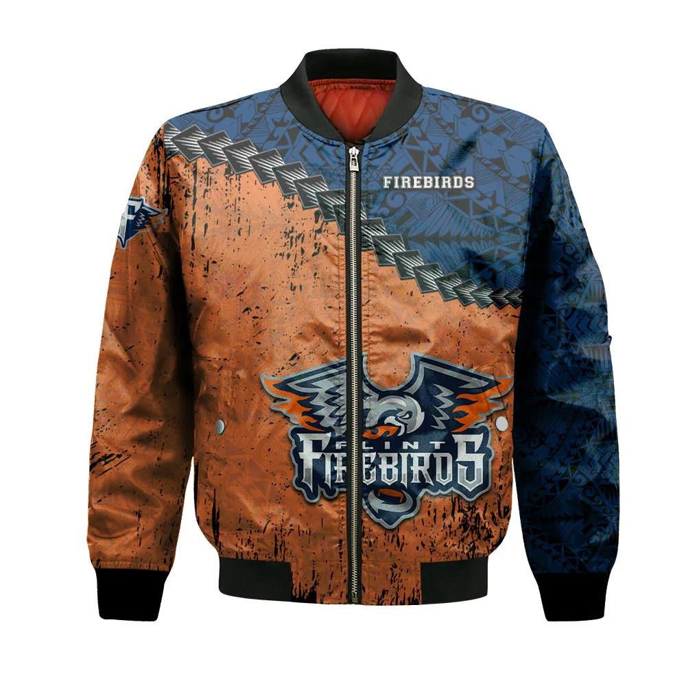 Flint Firebirds Bomber Jacket 3D Printed Grunge Polynesian Tattoo – livanniespoon Store