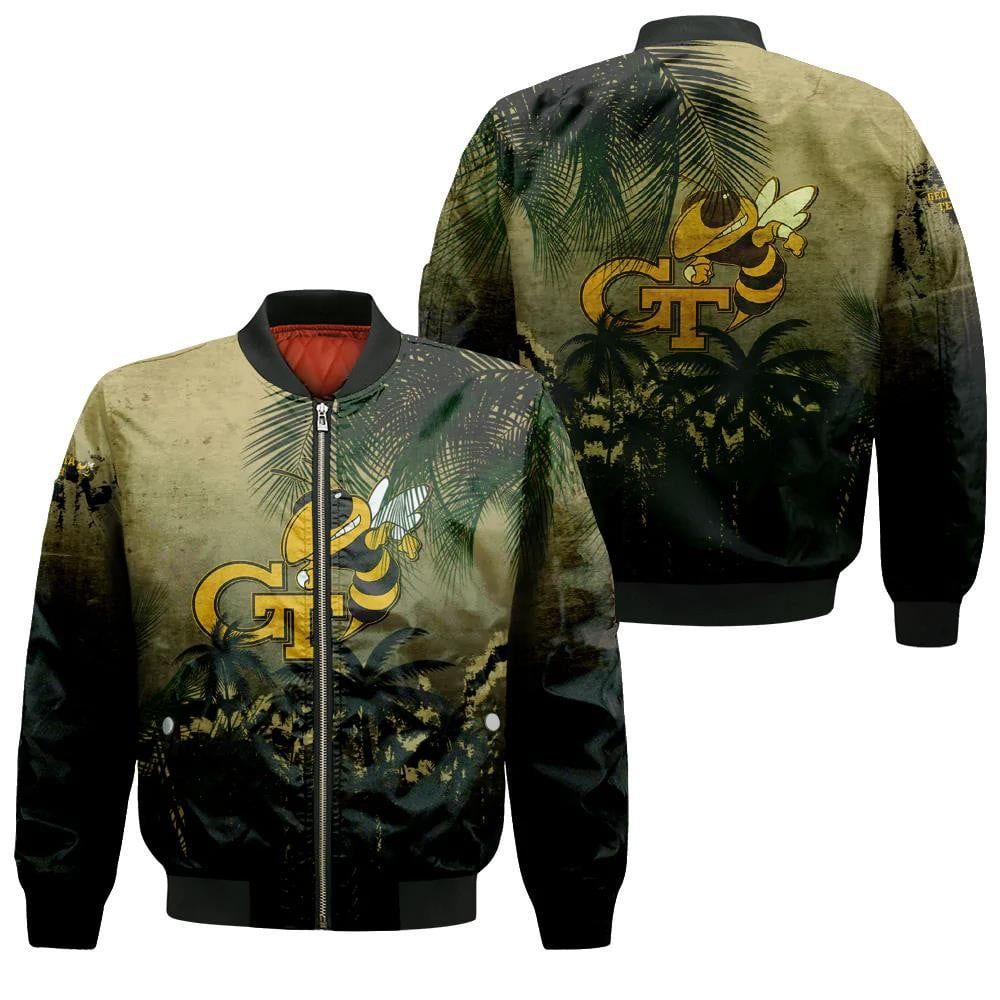 Georgia Tech Yellow Jackets Bomber Jacket 3D Printed Coconut Tree Tropical Grunge – livanniespoon Store