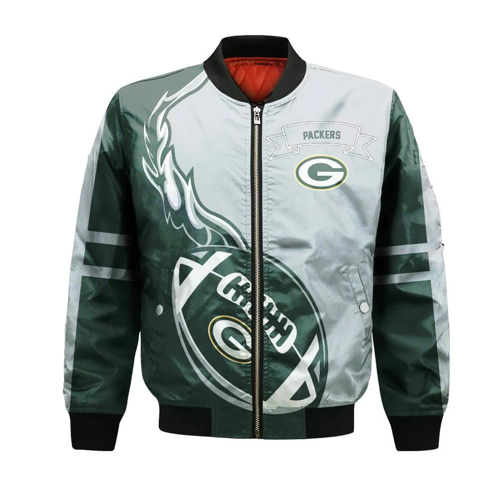 Green Bay Packers Bomber Jacket 3D Printed Flame Ball Pattern – livanniespoon Store