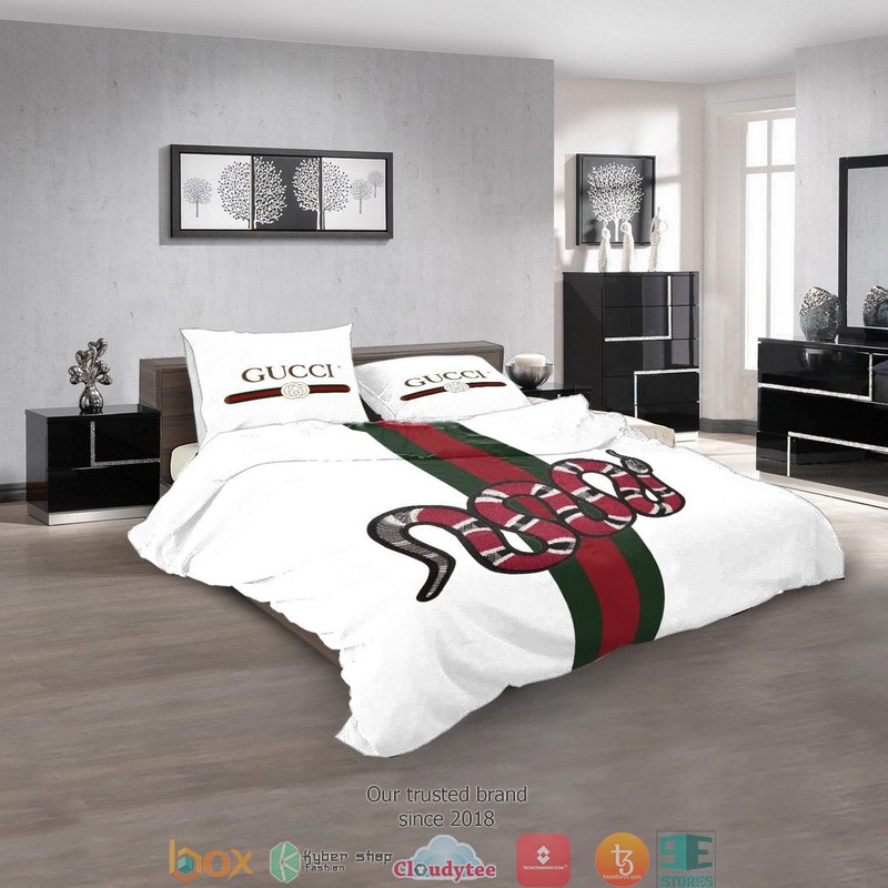Gucci Red Snake White Quilt Bedding Set -livanniespoon Store