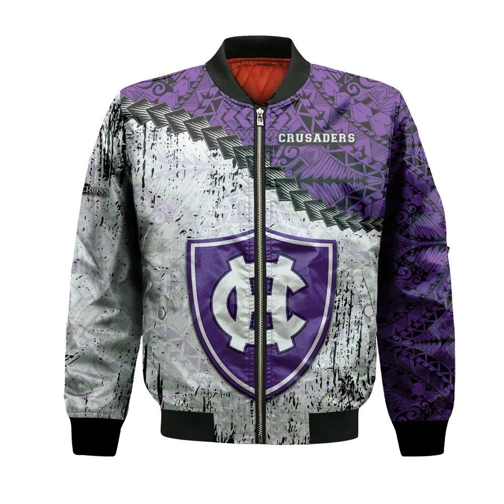 Holy Cross Crusaders Bomber Jacket 3D Printed Grunge Polynesian Tattoo – livanniespoon Store