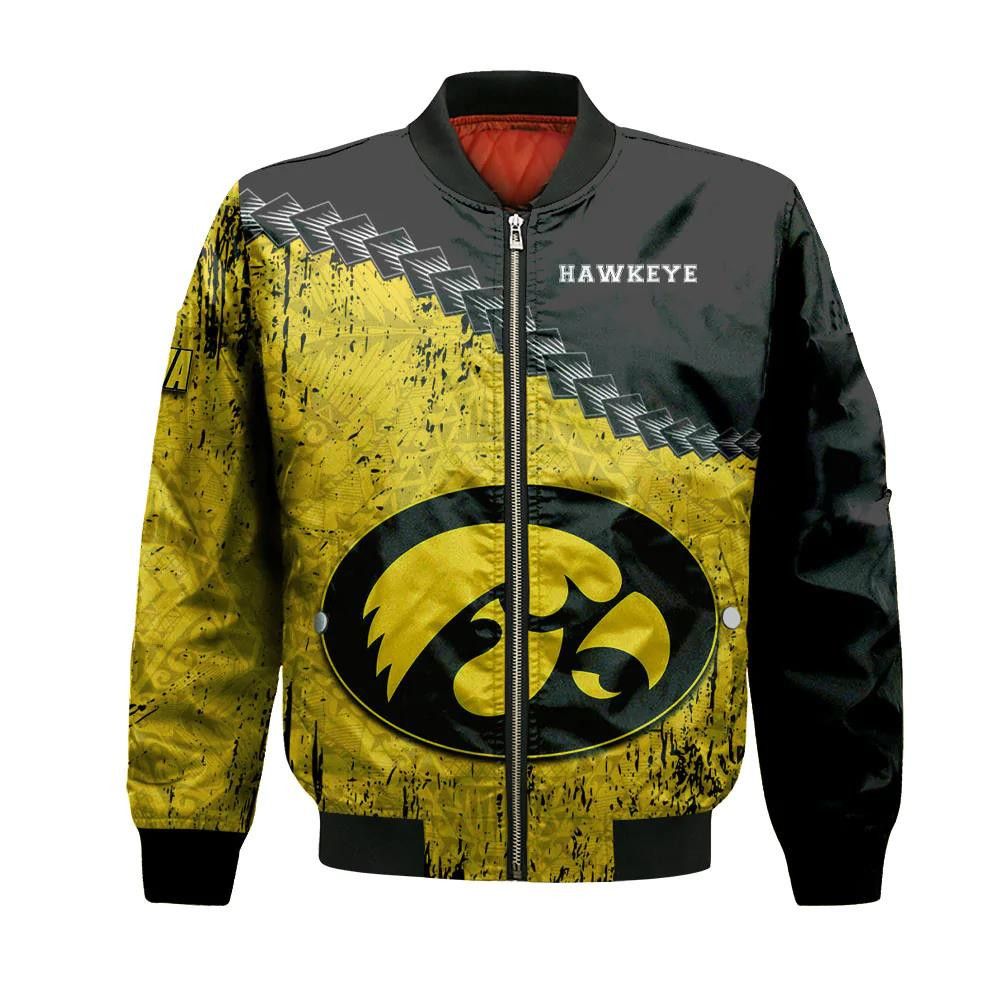 Iowa Hawkeyes Bomber Jacket 3D Printed Grunge Polynesian Tattoo – livanniespoon Store