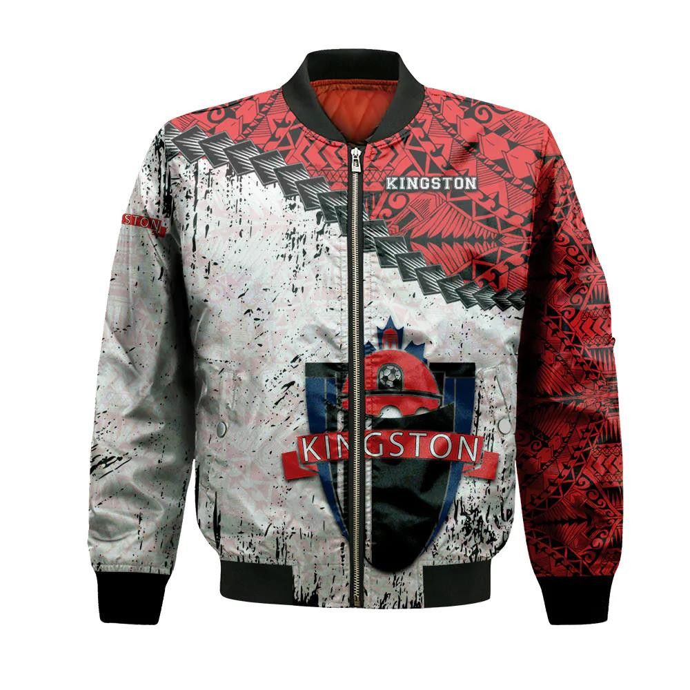 Kingston Fc Bomber Jacket 3D Printed Grunge Polynesian Tattoo – livanniespoon Store