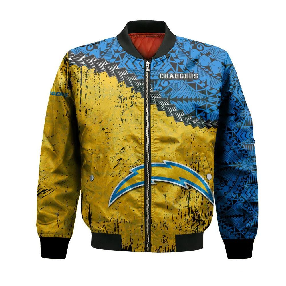 Los Angeles Chargers Bomber Jacket 3D Printed Grunge Polynesian Tattoo – livanniespoon Store