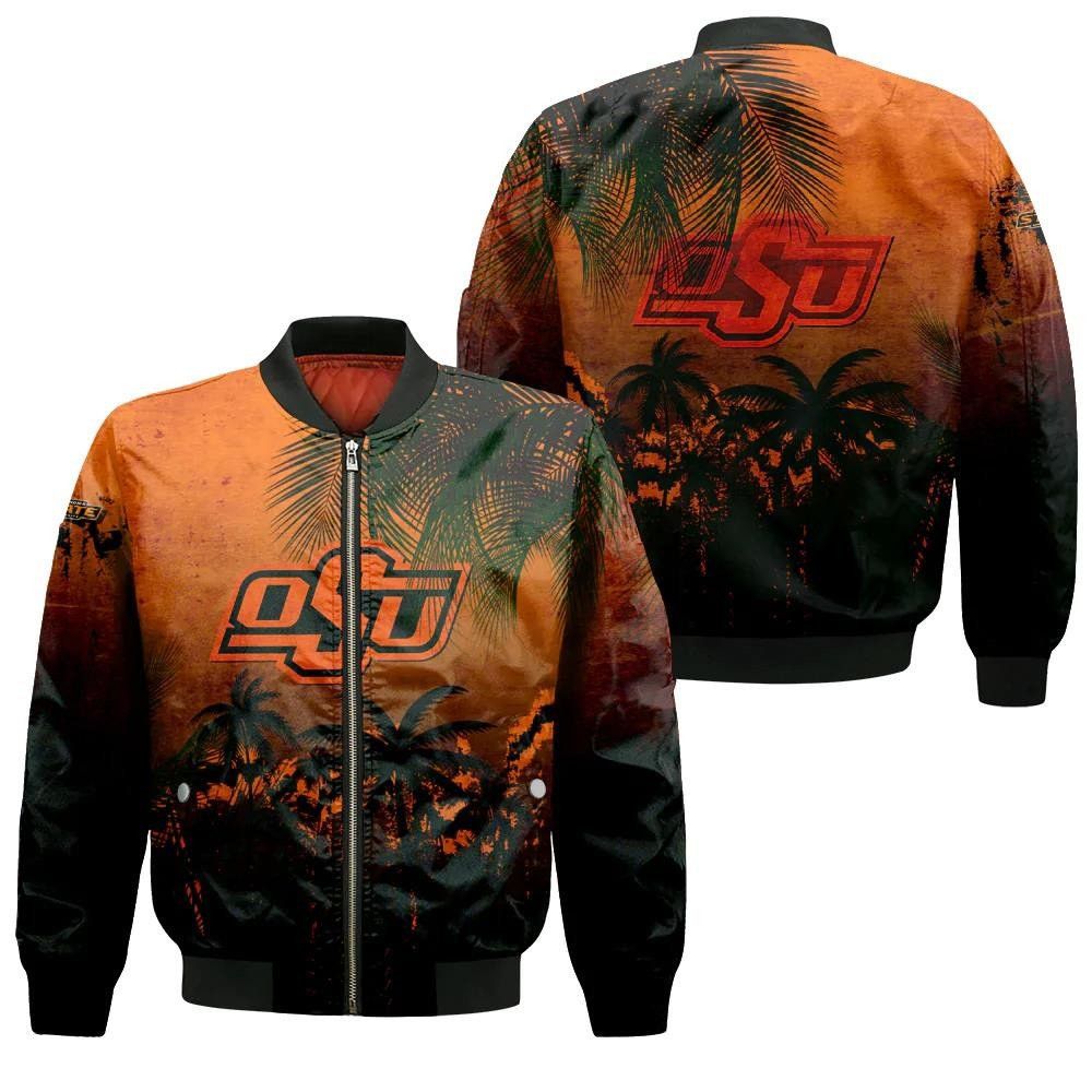 Oklahoma State Cowboys Bomber Jacket 3D Printed Coconut Tree Tropical Grunge – livanniespoon Store