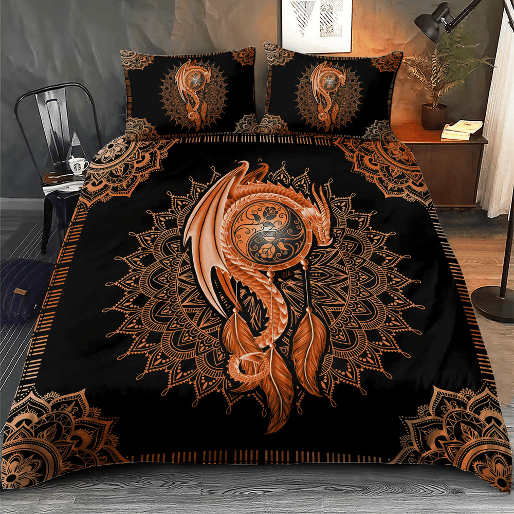 Orange Dragon Mandala All Over Printed Bedding Set -livanniespoon Store
