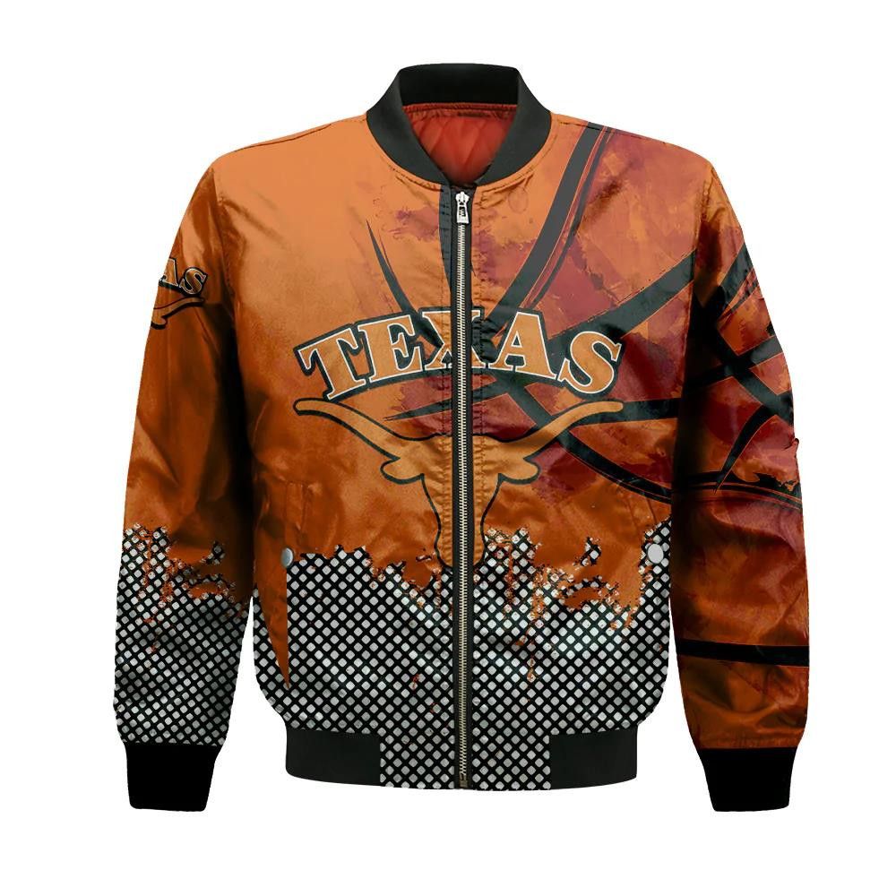 Texas Longhorns Bomber Jacket 3D Printed Basketball Net Grunge Pattern – livanniespoon Store