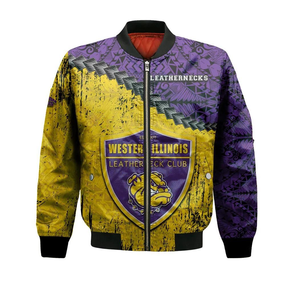 Western Illinois Leathernecks Bomber Jacket 3D Printed Grunge Polynesian Tattoo – livanniespoon Store