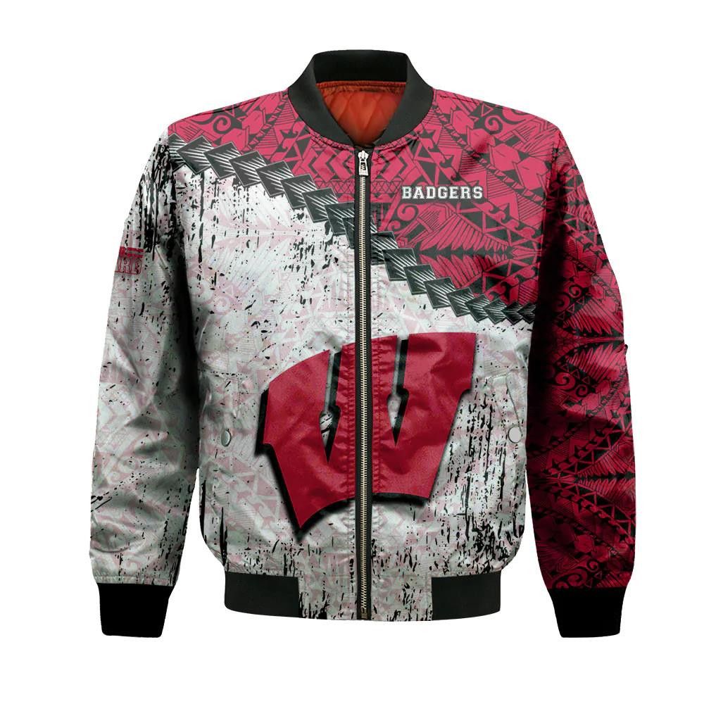Wisconsin Badgers Bomber Jacket 3D Printed Grunge Polynesian Tattoo – livanniespoon Store