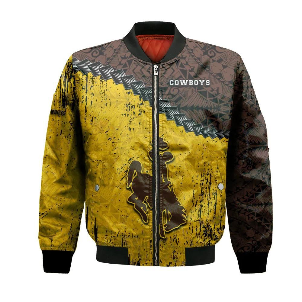 Wyoming Cowboys Bomber Jacket 3D Printed Grunge Polynesian Tattoo – livanniespoon Store