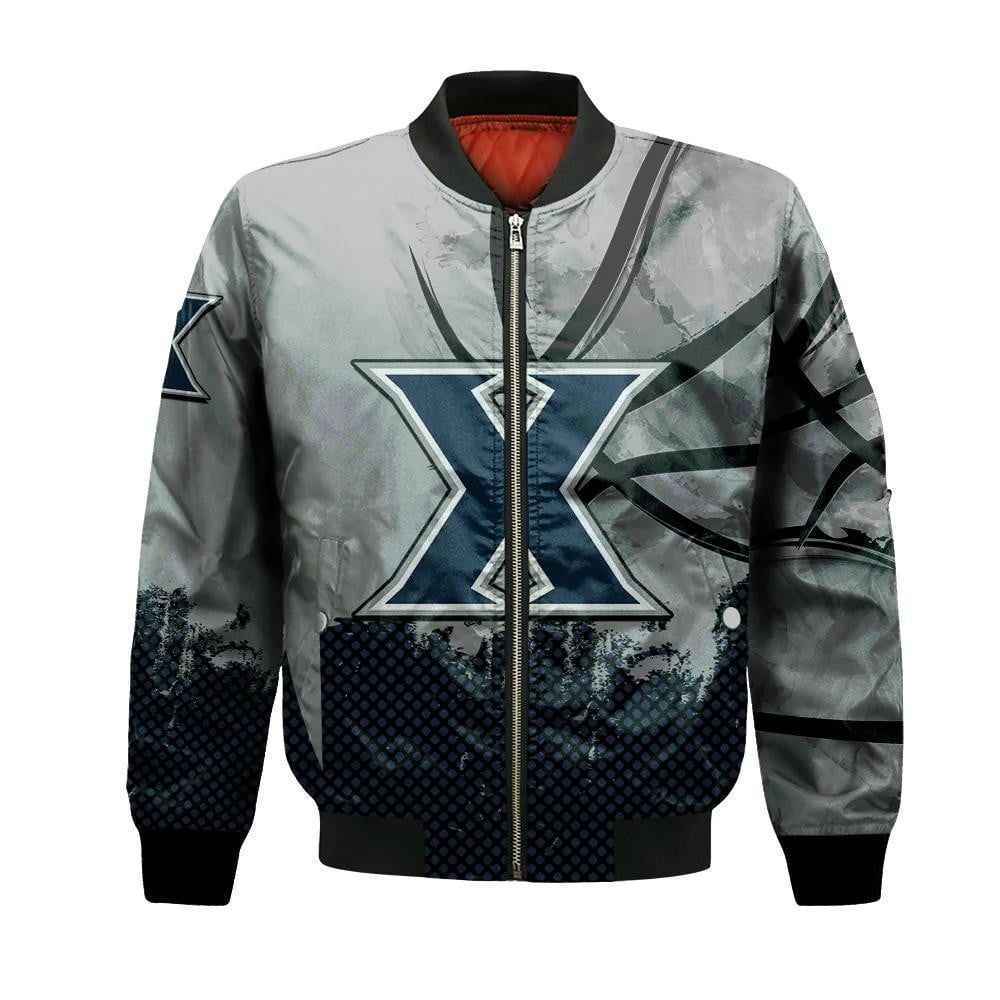 Xavier Musketeers Bomber Jacket 3D Printed Basketball Net Grunge Pattern – livanniespoon Store